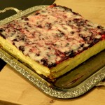 Nach dem Backen von jedem Teigstreifen 1/3 abschneiden, das wird später der mittlere Boden der Cremeschnitten.