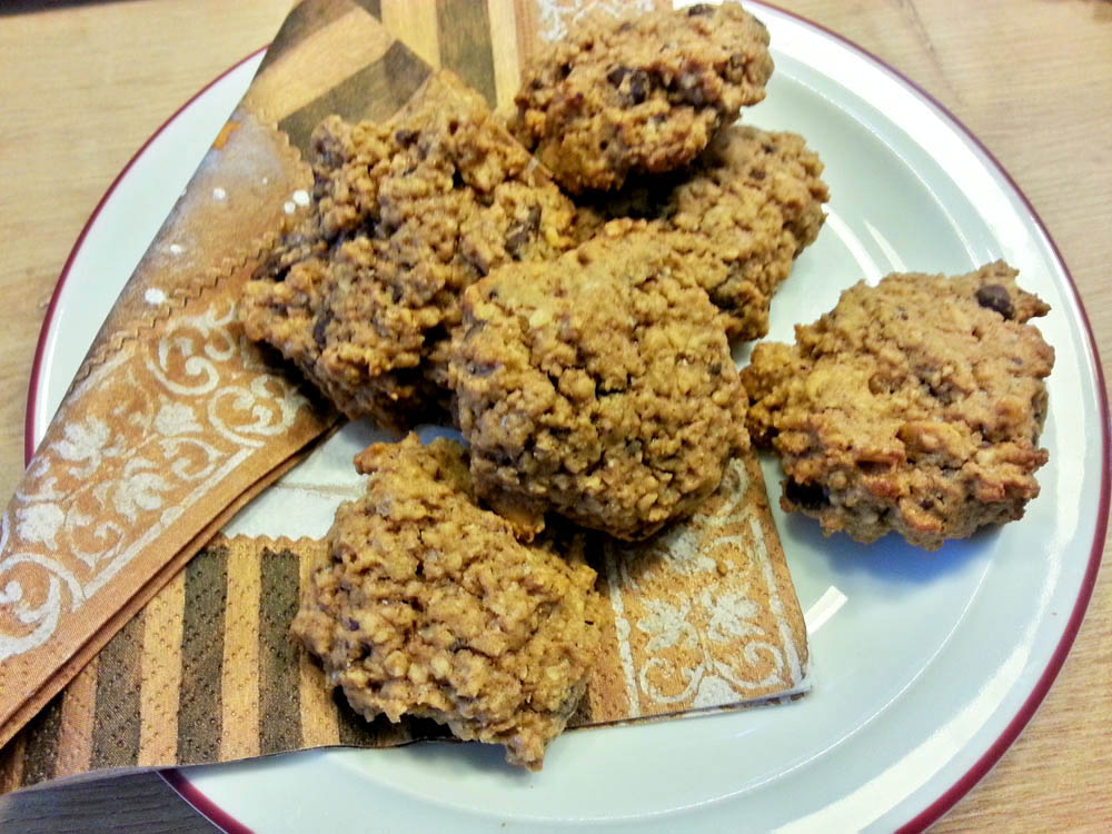 Das Backrohr auf 180° Heißluft vorheizen, mit einem TL kleine Häufchen (abstand lassen) auf ein mit Backpapier belegtes Blech setze (wie große Walnüsse).Die Häufchen mit der nassen Hand etwas flachdrücken und 12-15 Minuten, goldbraun, backen.