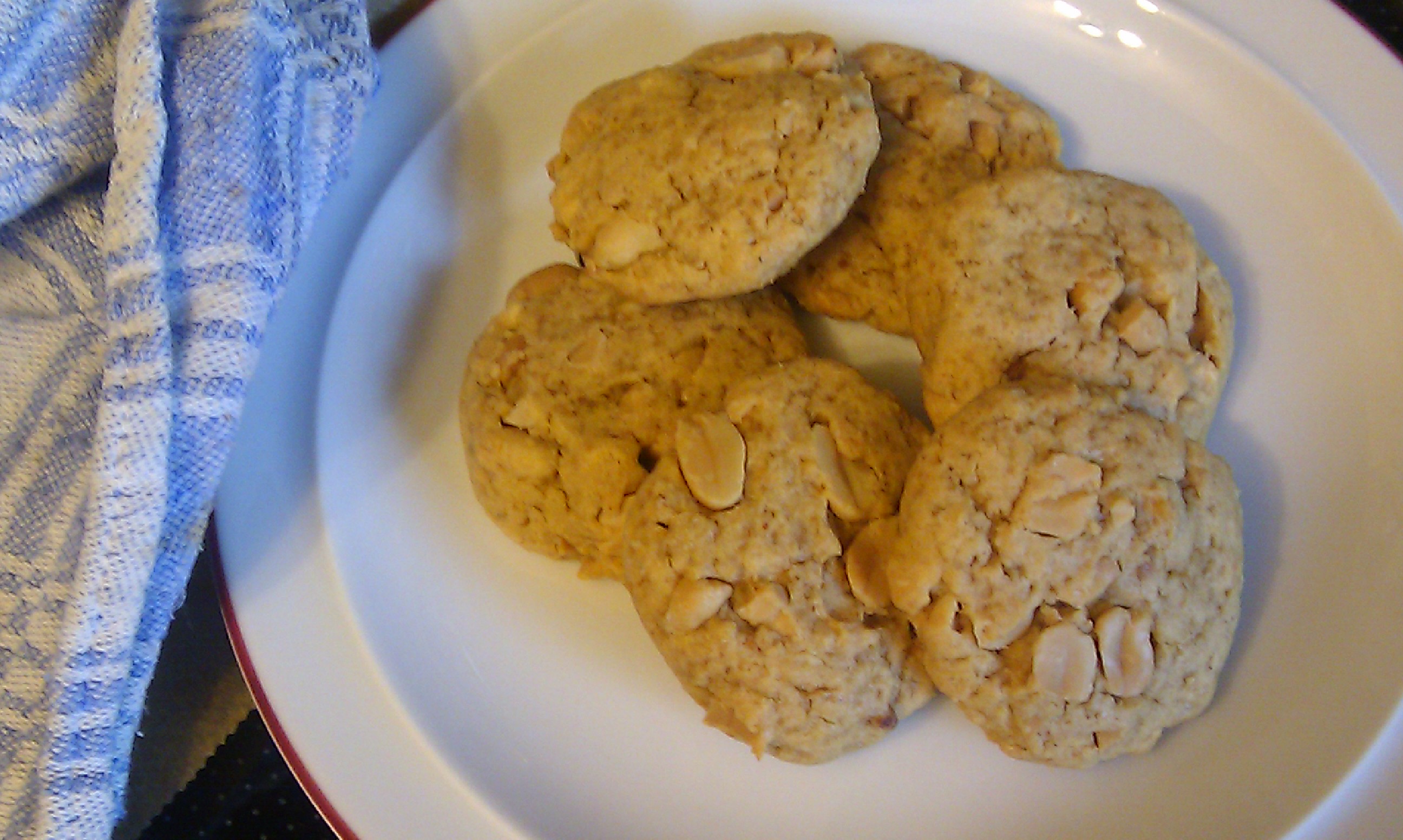 Ei, Zucker, Vanillezucker, Erdnussbutter, und Milch verrühren bis der Zucker gelöst ist, dann die restlichen Zutaten unterrühren, die Erdnüsse noch etwas hacken.3-4 cm Kugeln formen und flachdrücken.Bei 180° Ober- Unterhitze ca. 10 – 15 Minuten backen bis sie an den Rändern etwas Farbe bekommen haben.
