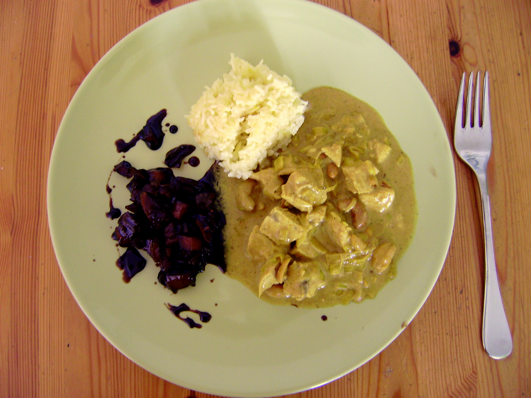 Putencurry mit Mangochutney und Safranreis